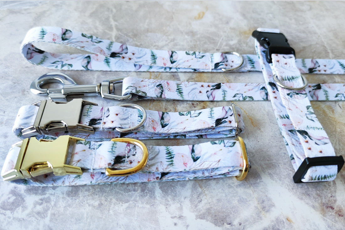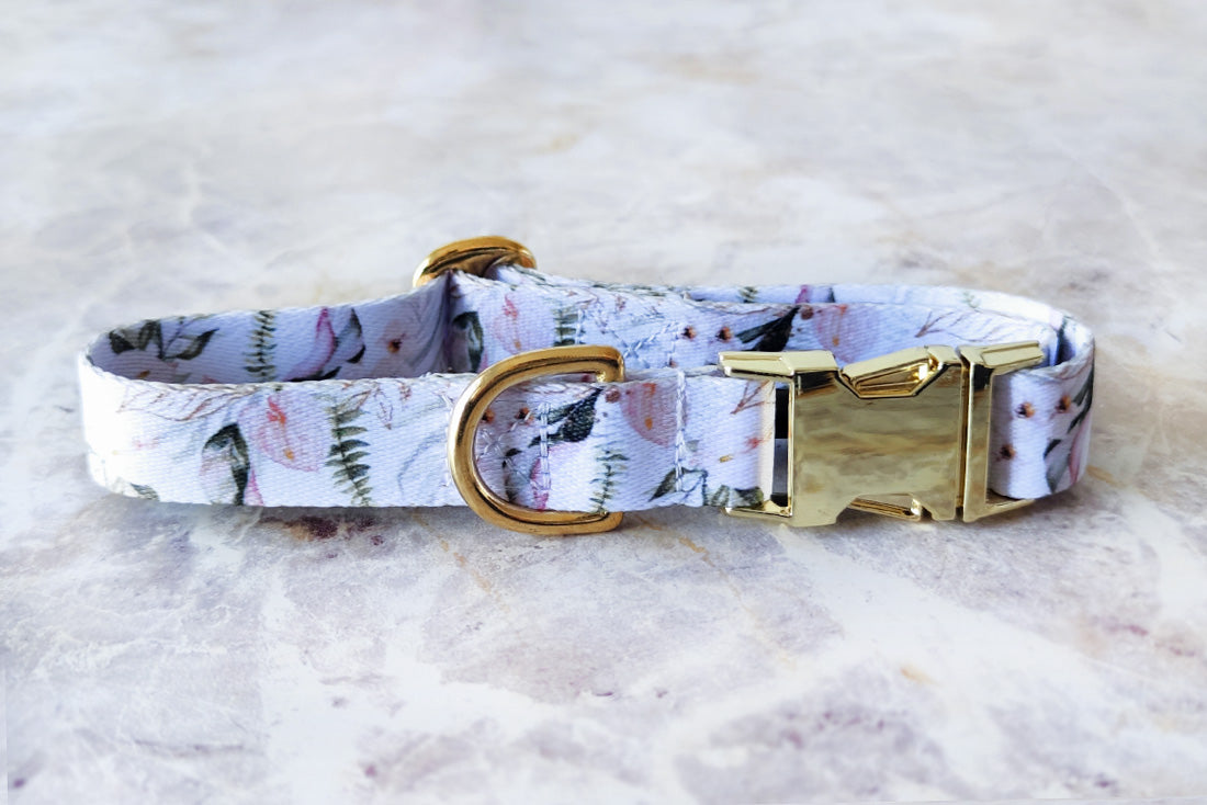 Coleira floral delicada e cheia de classe. Pode não deixar o teu pelo mais cheiroso, mas certamente vai ser muito cobiçada nos passeios.