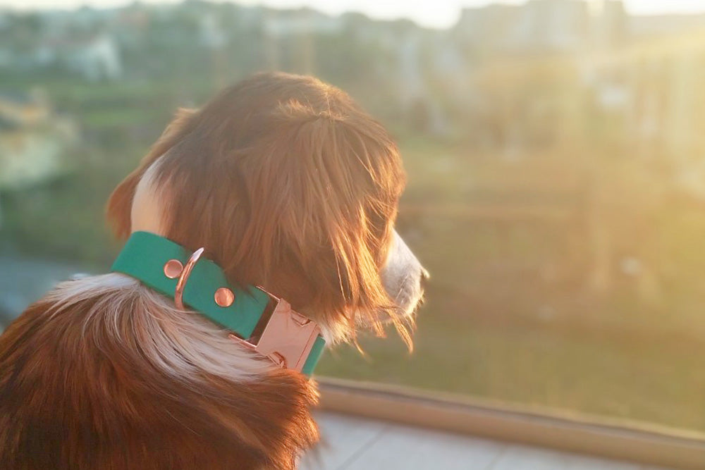 Coleira artesanal premium, em pele vegan, ultra robusta.