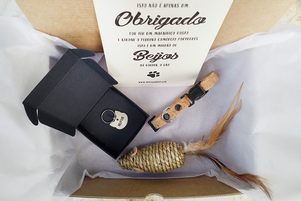 Todos os produtos incluídos na Garfield Box são de excelente qualidade desde a coleira muito leve e lindissima á medalha personalizada, o brinquedo e a caixa em si.