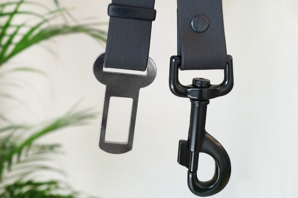 Somos eternos amantes de viagens, mas sempre em segurança! A utilização do cinto de segurança é obrigatória também para os animais. Este acessório consiste numa fita ajustável de pele vegan que tem, numa extremidade, um gancho para prender o peitoral e, na outra, uma fivela que se prende no encaixe do cinto de segurança do carro.