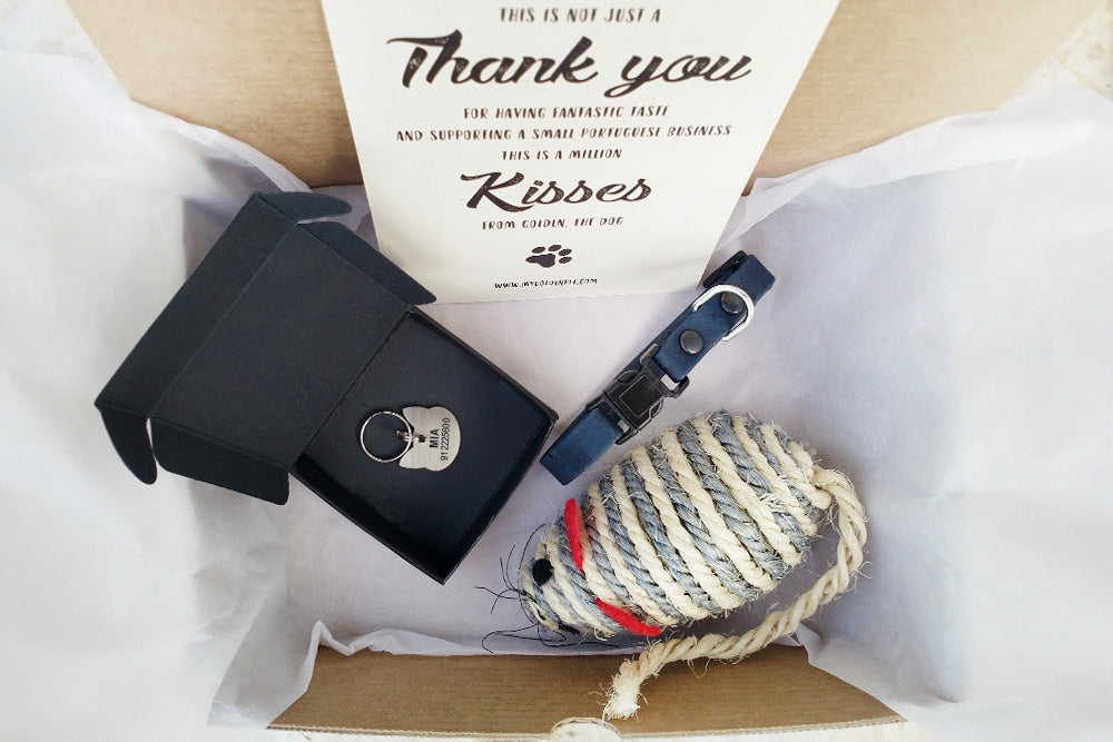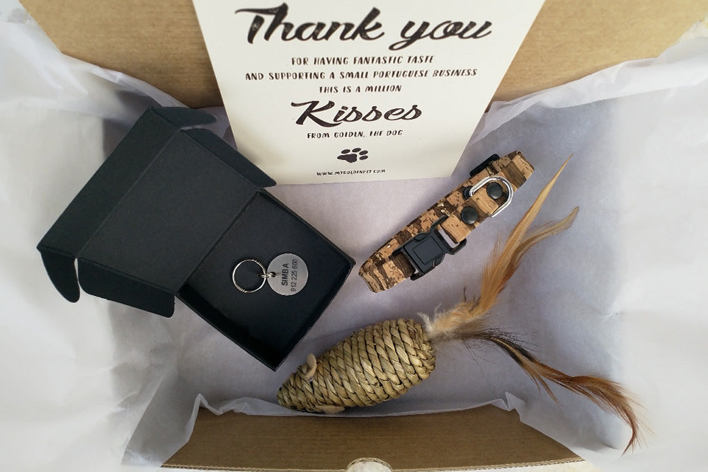 Gatos com atitude fora da caixa merecem... a Garfield Box! A melhor combinação de coleira, medalha e brinquedo.